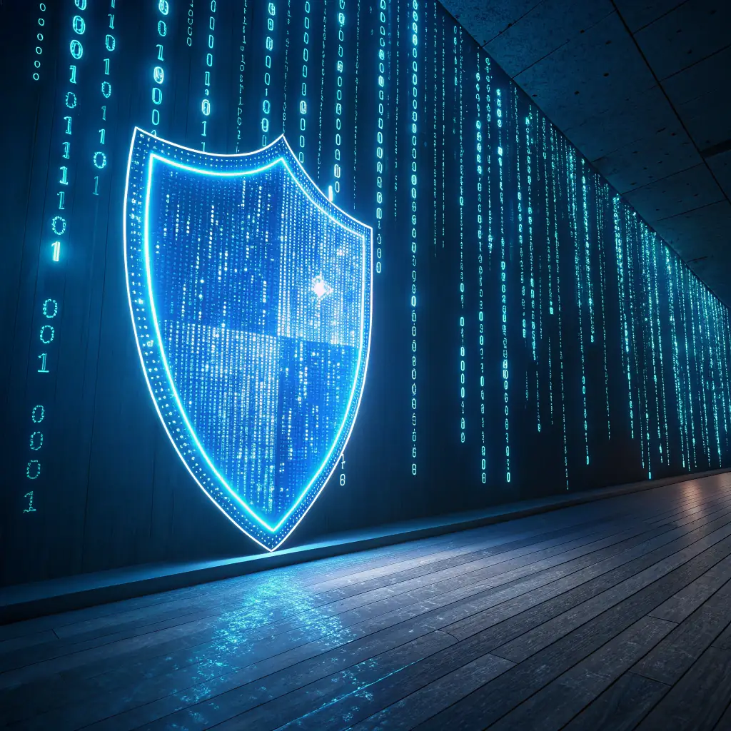 An image of a shield icon over a digital network with security analytics in the background, symbolizing Cybexis's cybersecurity assessments.